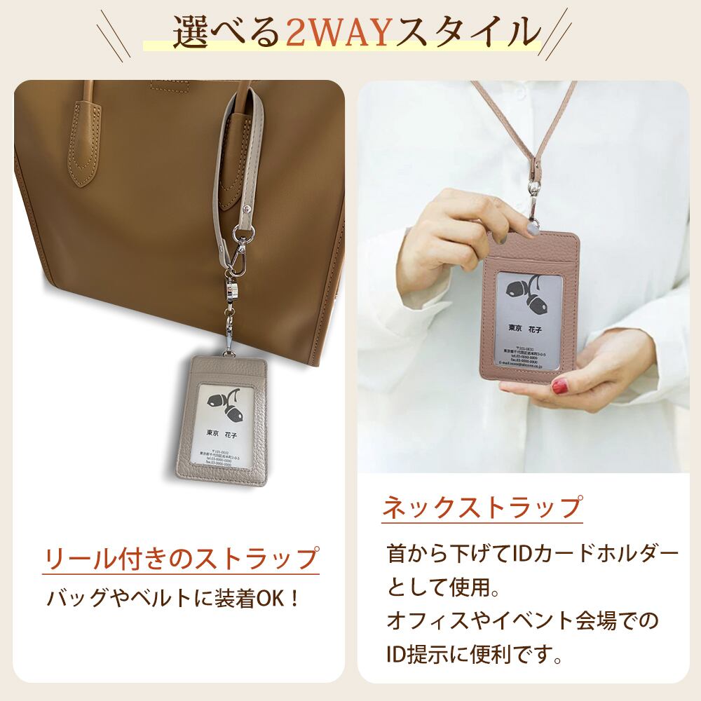 牛革 伸縮 リール 両面 IDカードケース 3ポケット ネックストラップ 交通カード 名刺 社員証 伸びるストラップ カードホルダー カードキー ICカード IDカード ケース 首掛け 首かけ 首さげ バッグに付ける バッグやベルトに取り付け可能 クリアポケット付き 薄型 軽量 スリム オシャレ シンプル 実用 カード収納 通勤 通学 ビジネス イベント 展示会 レディース メンズ 学生 大学生 子供用 高校生 大人 人気 高級 スリム シンプル 上品 男女兼用 ユニセックス 新入社 新入学 新生活 応援 お祝い ギフト プレゼント 伸縮リール ストラップ スリム ブランド クリア ポケット 新入学 新生活応援