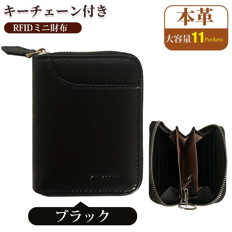 財布 メンズ 二つ折り 本革 キーケース 小銭入れ ミニ財布 コンパクト レディース スキミング防止 革 レザー カードケース キーチェーン付き
